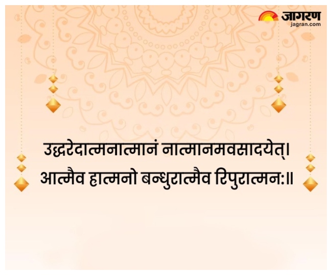 भगवद गीता के छठे अध्याय के 5 वें श्लोक में भगवान श्री कृष्ण, अर्जुन से कहते हैं कि हमें खुद का उद्धार करना चाहिए न कि खुद का पतन करना चाहिए। हम स्वयं ही अपने मित्र होते है और स्वयं ही अपने शत्रु भी बन सकते हैं।