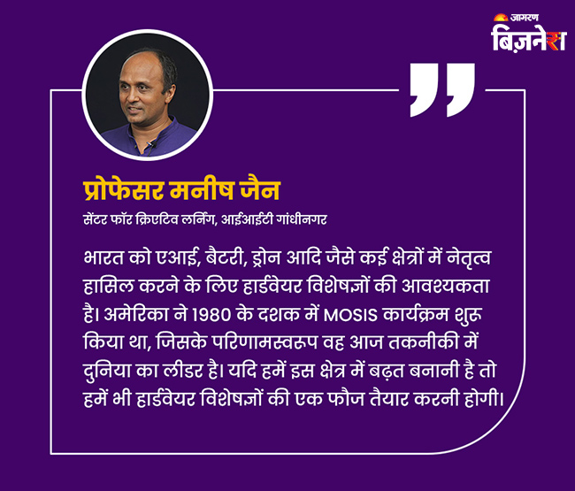 आईआईटी गांधीनगर के प्रोफेसर और सेंटर फॉर क्रिएटिव लर्निंग के प्रिंसिपल कोऑर्डिनेटर मनीष जैन ने जागरण से बातचीत में कहा कि भारत तकनीकी क्रांति के मुहाने पर खड़ा है। यहां से हमें ऐसे स्किल्ड पेशेवरों की एक फाैज तैयार करनी होगी, जो न केवल उपभोक्ता के रूप में, बल्कि निर्माता के रूप में भी सोच सके। फिलहाल, अधिकांश इंजीनियर सॉफ्टवेयर इंजीनियरिंग को करियर के रूप में चुन लेते हैं, क्योंकि हार्डवेयर को बहुत कठिन माना जाता है और इसमें रोजगार के अवसर भी कम हैं। ऐसा इसलिए हुआ क्योंकि सभी स्तरों पर हार्डवेयर शिक्षा ज्यादातर सैद्धांतिक रही और इसमें इंजीनियरिंग पर ध्यान केंद्रित करने का अभाव है।