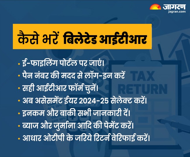 जिन करदाताओं ने जुलाई में आईटीआर फाइल नहीं किया है वह 31 दिसंबर 2024 तक बिलेटिड रिटर्न (Belated ITR) फाइल कर सकते हैं। इस रिटर्न फाइल करने के साथ उन्हें पेनल्टी का भुगतान करना पड़ेगा। अगर वह इस समयसीमा तक भी रिटर्न फाइल नहीं करते हैं तो उन्हें भारी जुर्माना देना पड़ सकता है।
