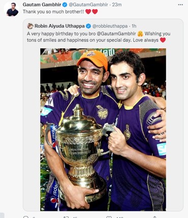 वहीं, आइपीएल की बात करें तो कोलकाता नाइट राइडर्स के लिए कप्तानी करते हुए गंभीर ने साल 2012 में पहला और 2014 में दूसरा खिताब जीता। बता दें कि गंभीर एकमात्र भारतीय बल्लेबाज हैं जिन्होंने लगातार पांच टेस्ट मैचों में शतक जड़े हैं। जन्मदिन के अवसर पर भारत के कई पूर्व किकेटर्स ने गौतम गंभीर को जन्मदिन की बधाई दी।