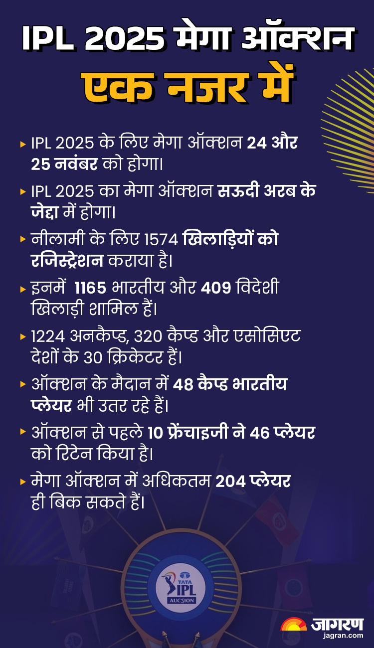 - IPL 2025 के लिए मेगा ऑक्शन 24 और 25 नवंबर को होगा।