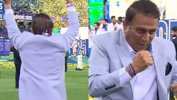 जीतने के बाद जब टीम इंडिया ट्रॉफी उठाने गई तो सुनील गावस्कर स्टार स्पोर्ट्स पर पैनल डिसक्शन में व्यस्त थे। वह मैदान पर ही थे। उनके पीछे ही टीम इंडिया ट्रॉफी उठा रही थी। गावस्कर से रहा नहीं गया और वह टीम इंडिया को ट्रॉफी उठाते देख डांस करने लगे। गावस्कर हाथ हवा में लहराकर जमकर उछलने लगे और ताली बजाकर डांस करने लगे। स्टार स्पोर्ट्स की प्रेजेंटर मयंती लैंगर भी गावस्कर का ये डांस देख काफी खुश थीं। गावस्कर के चेहरे पर खुशी साफ देखी जा सकती थी।