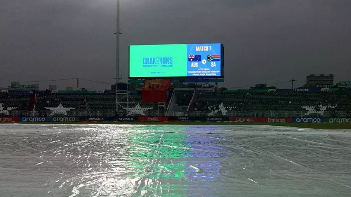 अब 2025 चैंपियंस ट्राफी में एक बार फिर वर्षा ने ऑस्ट्रेलिया के अभियान में व्यवधान डाला। लगातार वर्षा के कारण रावलपिंडी में दोनों कप्तान टॉस के लिए भी नहीं उतरे। स्थिति और खराब होते देख मैच अधिकारियों ने निर्धारित समय से तीन घंटे से कुछ अधिक समय बाद खेल रद्द कर दिया और दक्षिण अफ्रीका व ऑस्ट्रेलिया को एक-एक अंक दिया गया।