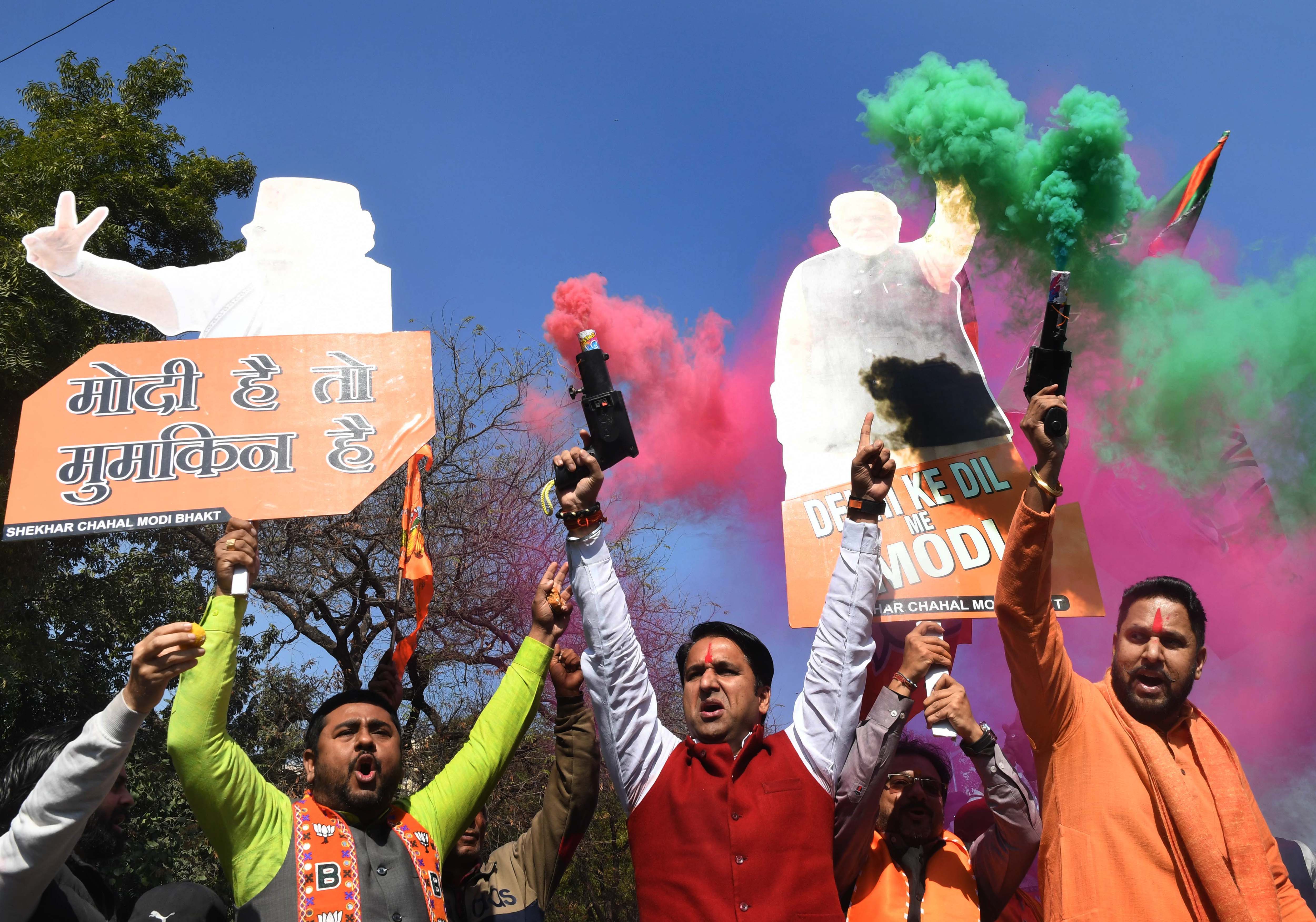 (दिल्ली चुनाव का परिणाम आने पर भाजपा कार्यकर्ताओं ने ऐसे मनाया था जश्न। जागरण फोटो)
