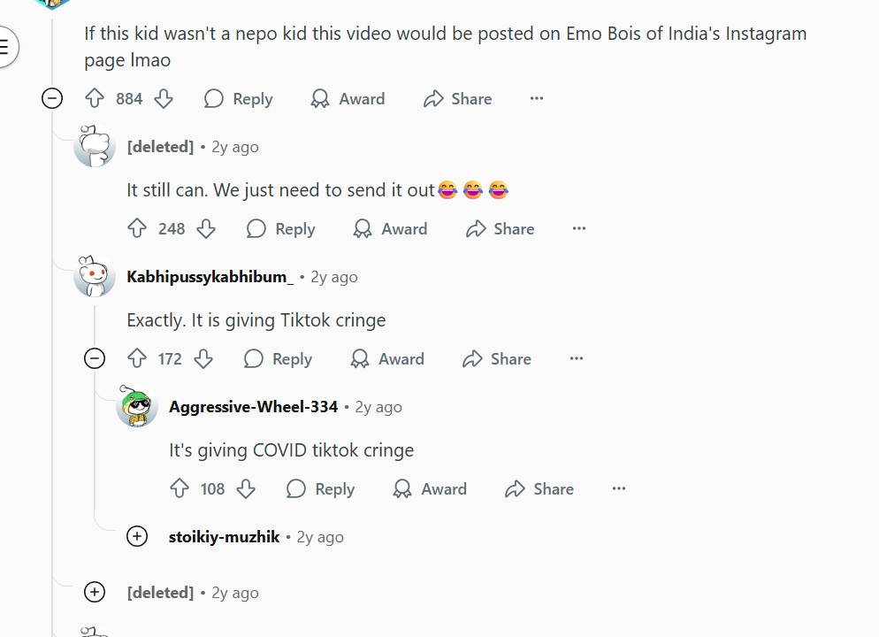 शायद मैं फोन की चिप जला देता ताकि ये वीडियो कभी रिलीज ही न हों। इन नेपो बेबी में आत्मविश्वास है, भाई। इसके बजाय, शायद किसी स्टेज प्ले में एक्टिंग कर लो, भगवान न करे, निचले स्तर के लोगों से जुड़ो और इस कला के प्यार के लिए कम रोशनी वाले थिएटरों में एक्टिंग करो।