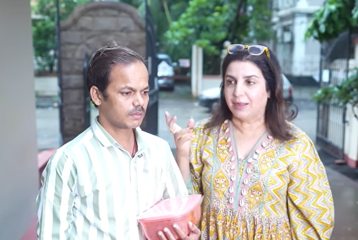 फराह उन्हें फ्लर्ट के बारे में बताती हैं और मन ही मन दिलीप फुसफुसाते हैं कि वह साहब को इस बारे में बताएंगे। इसके बाद वह बोमन ईरानी के घर में एंट्री करती हैं और दरवाजा उनकी पत्नी जेनोबिया खोलती हैं जिसे फराह अपनी सौतन बताती हैं। इतने में बोमन आते हैं और अपनी पत्नी की साइड लेते हुए उल्टा उन्हें सौतन बुलाते हैं। दोनों फिर एक-दूसरे को हग करते हैं और साइड किस करते हैं और फराह दिलीप से कहती हैं कि साहब को मत बताना।