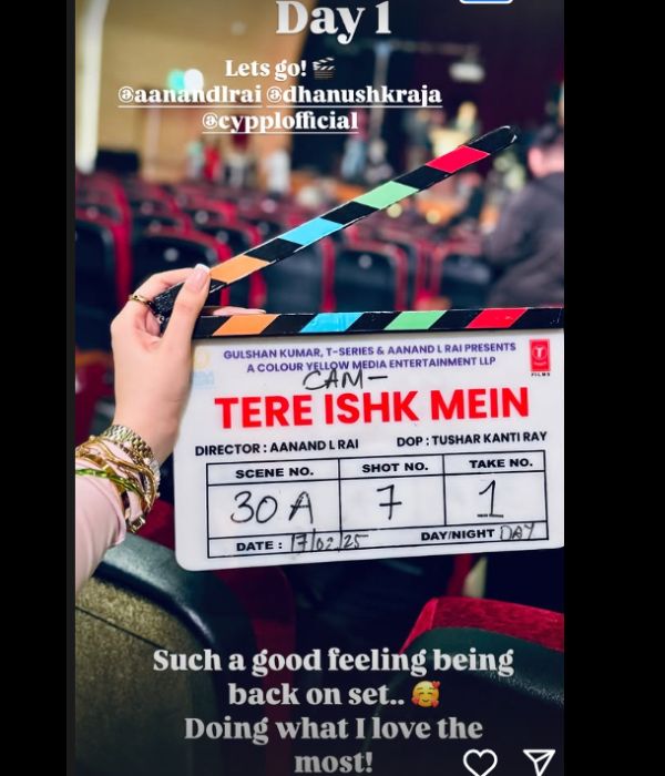 Kriti Sanon ने शुरू की Tere Ishk Mein की शूटिंग, सेट से तस्वीर शेयर कर बताई खुशी की वजह