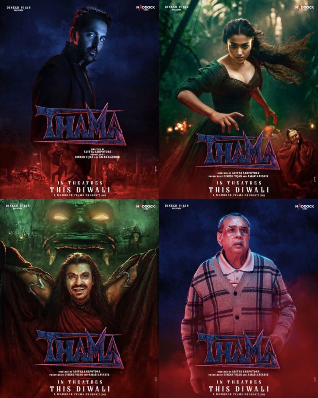 फिल्म में आपको आयुष्मान खुराना, रश्मिका मंदाना के अलावा नवाजुद्दीन सिद्दीकी और परेश रावल जैसे कलाकार अहम भूमिका निभाते हुए नजर आएंगे। स्री 2 की बंपर सक्सेस को बाद मैडॉक फिल्म्स ने थामा पर दांव खेला है। इस बार कहानी और किरदार नए हैं, लेकिन मेकर्स की उम्मीद रहेगी कि पिछली हॉरर कॉमेडी फिल्मों की तरह थामा भी बॉक्स ऑफिस पर धमाल मचाए।