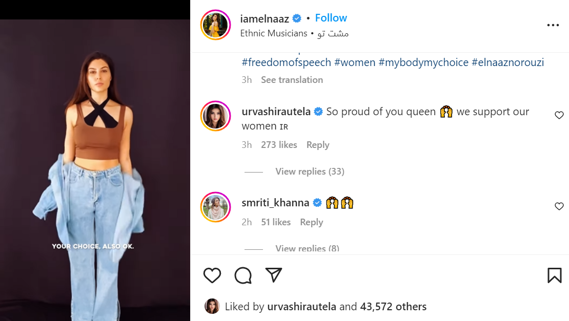 Elnaaz Norouzi Hijab Row: एलनाज के न्यूड वीडियो के सपोर्ट में उतरीं उर्वशी रौतेला, लिखा- हमें आप पर...
