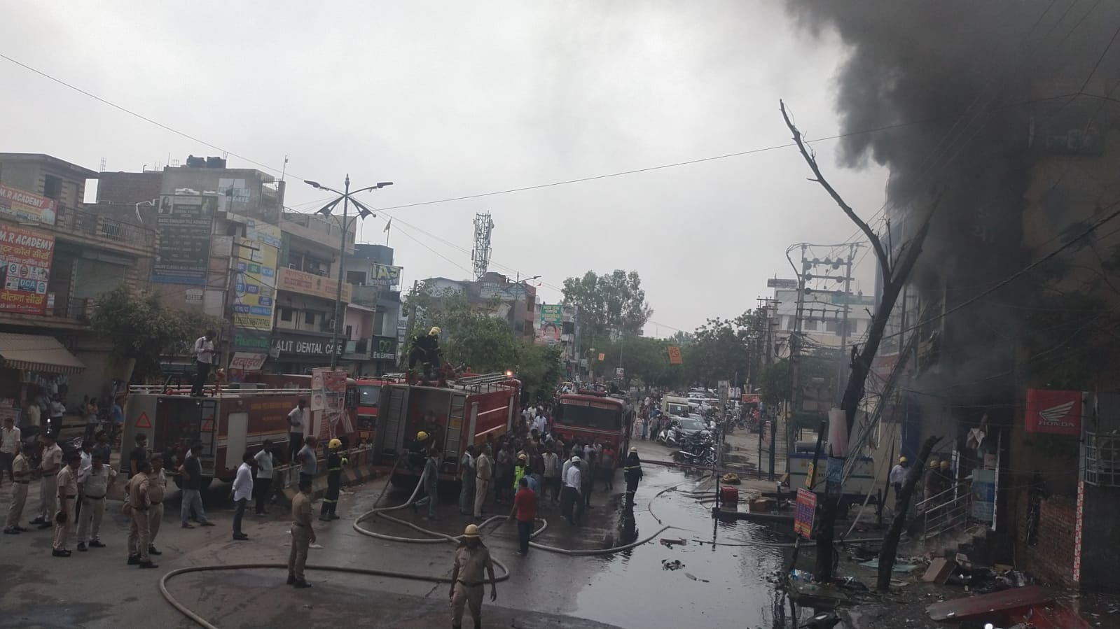 आग पर अभी काबू नहीं पाया जा सका है। पीछे होंडा की बिल्डिंग में भी आग पहुंची है। उसे भी बुझाने का प्रयास किया जा रहा है। पड़ोस में कोचिंग सेंटर है। आग से तीन फ्लोर की बिल्डिंग क्षतिग्रस्त हो गई है।