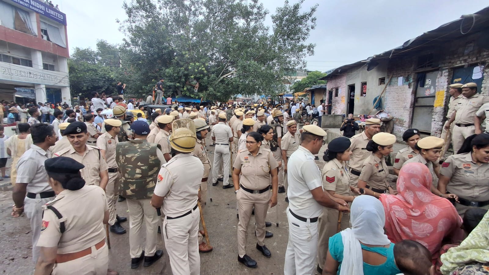 गुरुग्राम में बुलडोजर लेकर झुग्गियां हटाने पहुंचे डीटीपी बाठ, तोड़फोड़ के दौरान पुलिस और महिलाओं के बीच हुई झड़प
