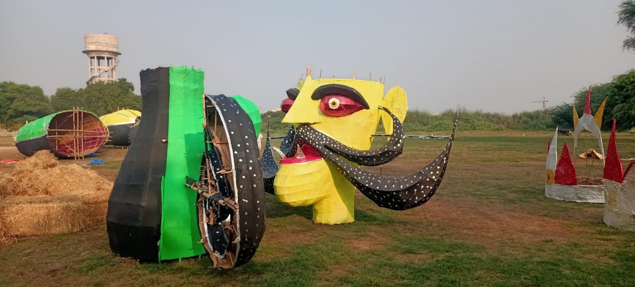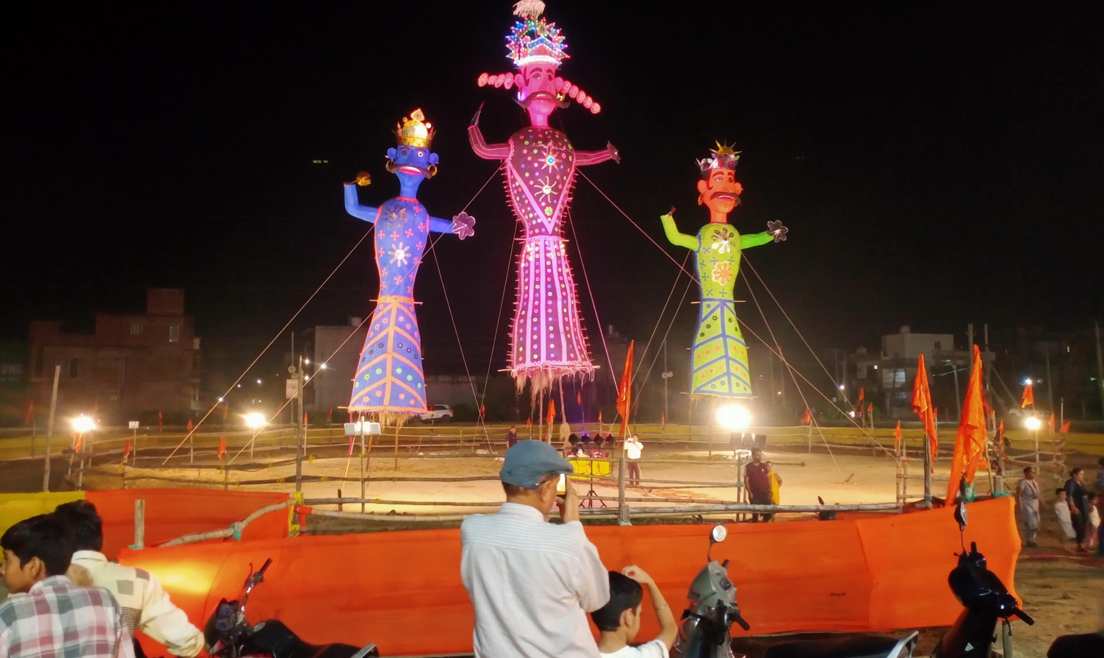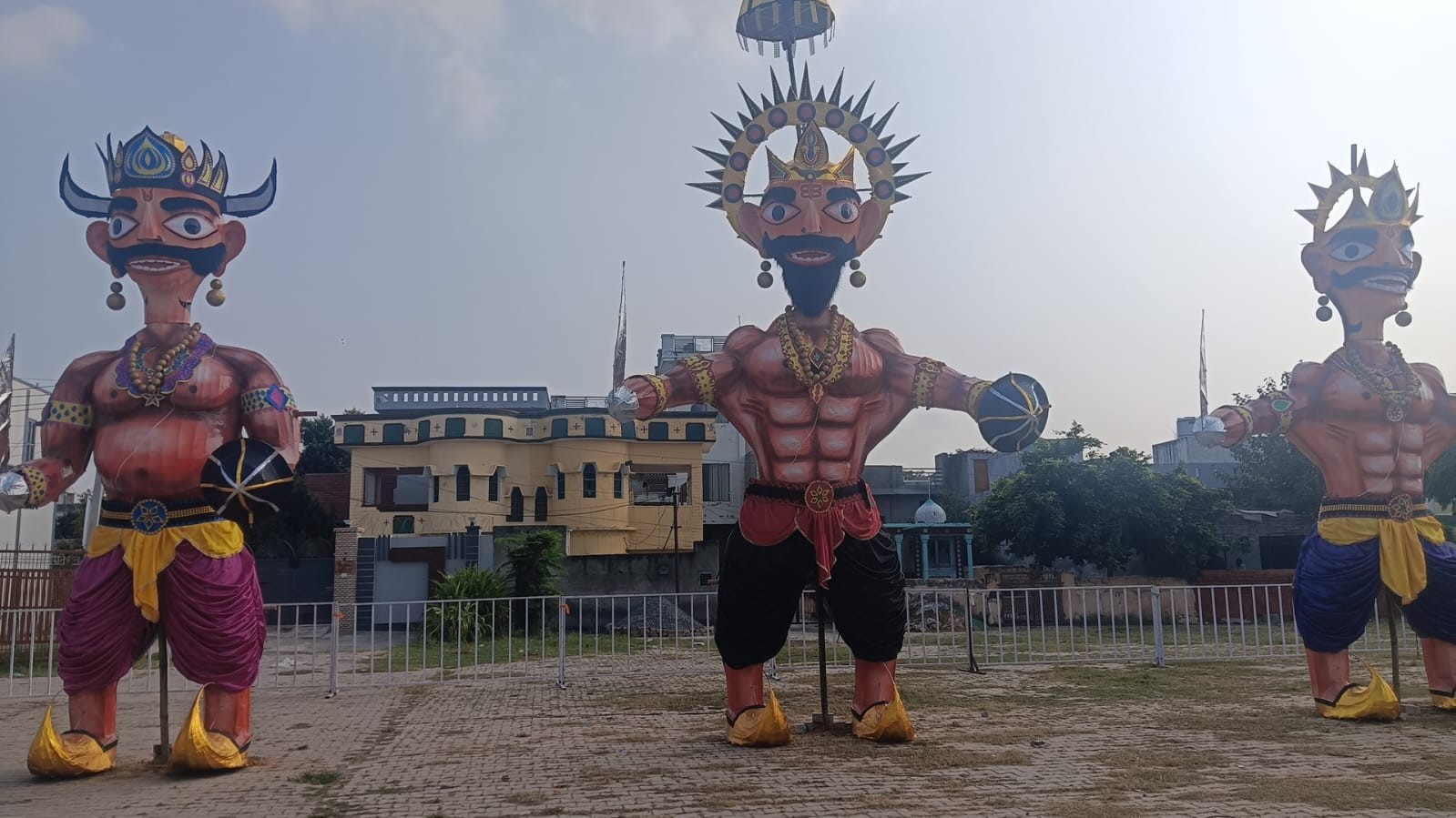 सेक्टर-24 में श्री कृष्ण क्लब दशहरा कमेटी के ग्राउंड में खडे रावण, कुंभकरण व मेघनाद के पूतले। जागरण