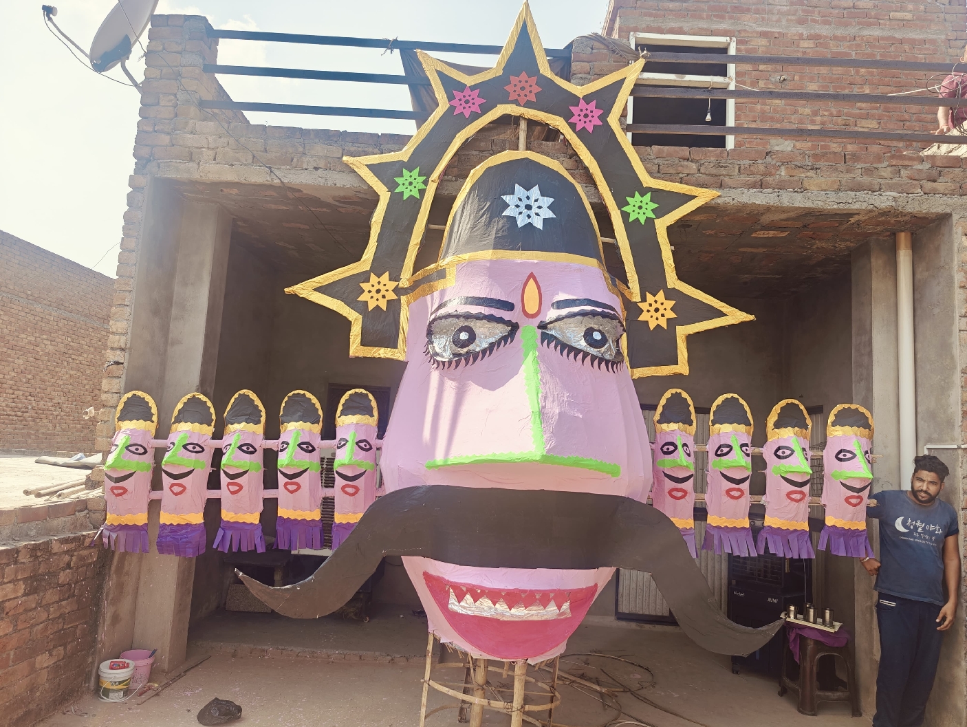 फतेहाबाद: रतिया में रावण के पुतले का तैयार किया गया मुखौटा।