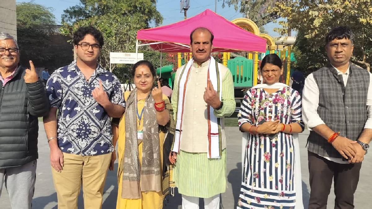 सोनीपत के भाजपा प्रत्याशी राजीव जैन ने परिवार के साथ डीएवी स्कूल में बने मतदान केंद्र पर वोट डाला।