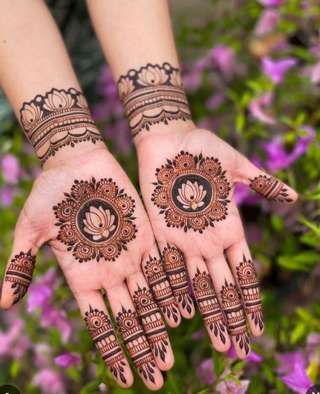 कमल के फूल वाली यह मिनिमल मेहंदी वर्किंग वूमेंस के लिए बिल्कुल परफेक्ट है। कुछ ही मिनट में लगाकर तैयार होने वाली यह मेहंदी देखने में काफी आकर्षित लगती है। साथ ही यह ज्यादा हैवी लुक भी नहीं देती है, तो अगर आप भी किसी को कॉपरेट कंपनी भी काम करती हैं, तो इस मिनिमल मेहंदी डिजाइन को लगाकर स्टाइलिश और ट्रेंडी लुक हासिल कर सकती हैं।