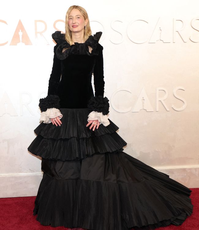 इस साल ऑस्कर अवॉर्ड की बेस्ट एक्ट्रेस नॉमिनी सिंथिया एरिवो ने रेड कारपेट लुक के लिए एमार्ल्ड ग्रीन रंग का वेल्वेट गाउन पहना, जिसपर एक बड़ा बो और ड्रैकुला कॉलर थे। हालांकि, यह उनकी फिल्म विकेड से काफी मेल खाता है, लेकिन रेड कारपेट लुक के लिए यह ज्यादा जचा नहीं। सिंथिया का गाउन ही नहीं, उनके नेल्स भी काफी ड्रामेटिक लगे।