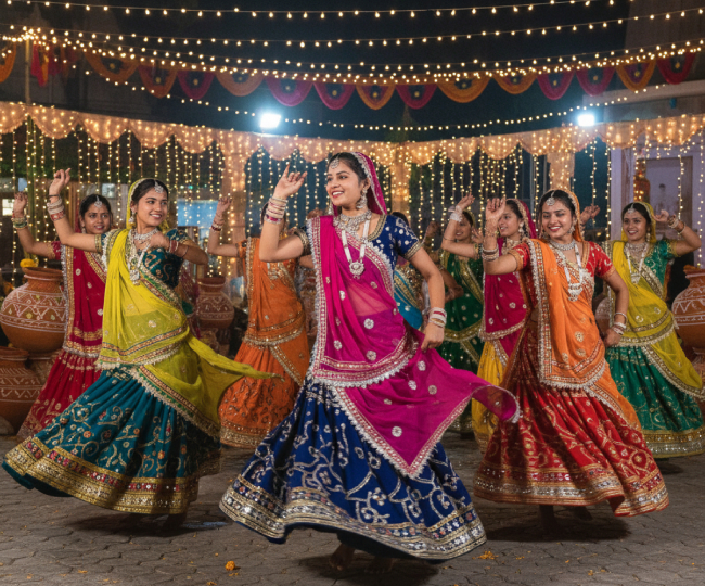 गरबा एक पारंपरिक गुजराती लोक नृत्य है, जो मिट्टी के दीये (गरबो) या देवी दुर्गा की मूर्ति के चारों ओर एक गोला यानी सर्किल बनाकर किया जाता है। गरबा शब्द गर्भ से आया है, जो जीवन और सृजन का प्रतीक है।