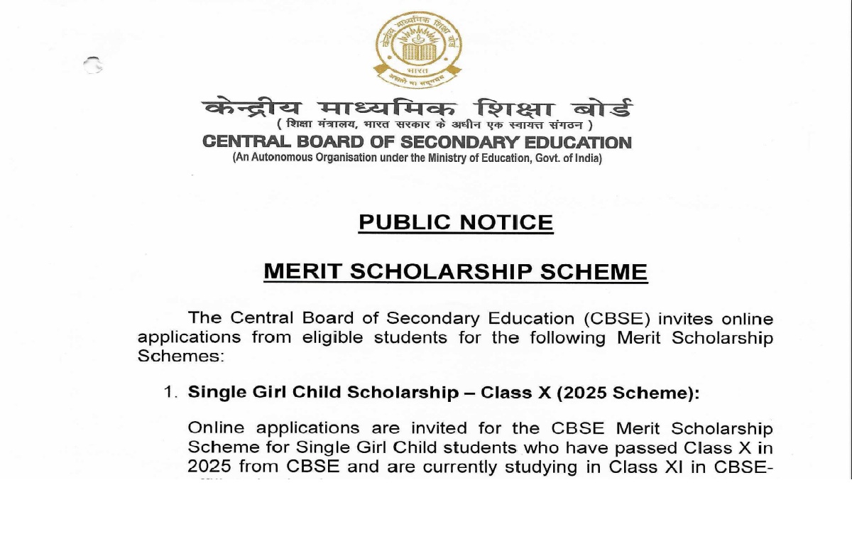 CBSE Scholarship 2025: सीबीएसई ने छात्राओं के लिए शुरू की स्कॉलरशिप, 23 अक्टूबर आवेदन करने की लास्ट डेट