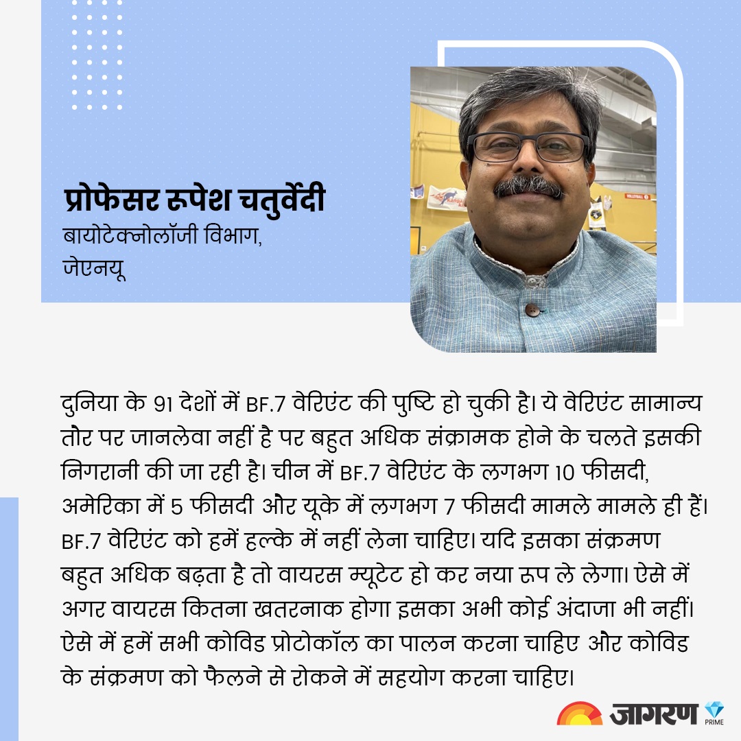 जेएनयू के बायोटेक्नोलॉजी विभाग के प्रोफेसर के मुताबिक BF.7 वेरिएंट बहुत घातक तो नहीं पर ये बहुत संक्रामक है। अगर इसका संक्रमण बहुत अधिक फैला तो वायरस ...और पढ़ें