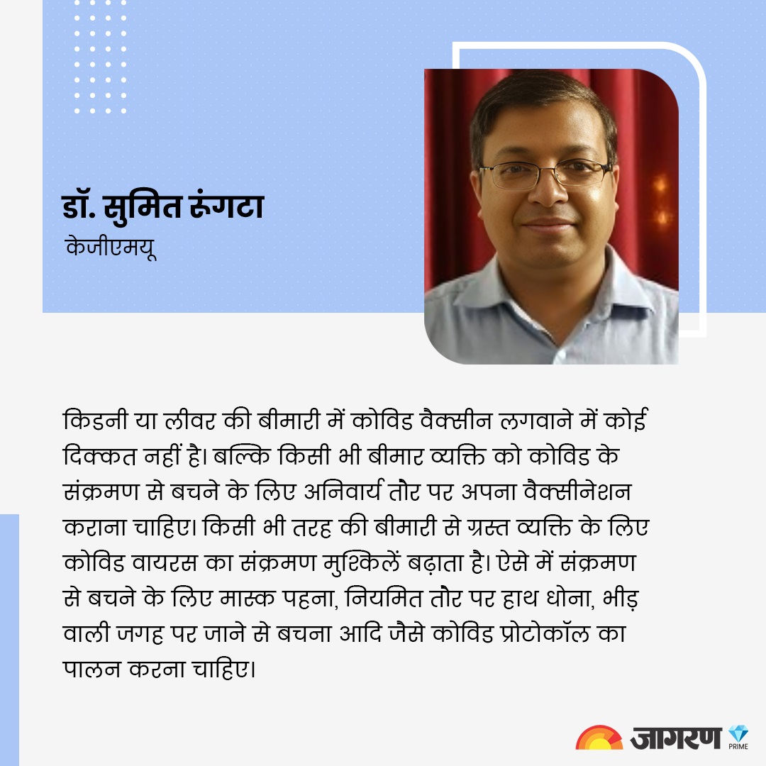 आपको लिवर या किडनी की कोई बीमारी है तो आप अपने डॉक्टर की सलाह से कोविड वैक्सीन लगवा सकते हैं।