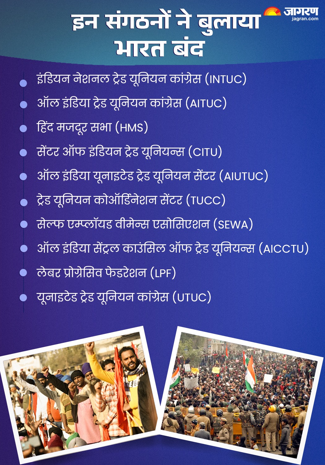 10 केंद्रीय ट्रेड यूनियनों के संयुक्त मंच ने इसे 'भारत बंद' का नाम दिया है। यूनियनों का कहना है कि सरकार ने मजदूरों की मांगों को नजरअंदाज किया और कॉरपोरेट हितों को बढ़ावा दिया। इस हड़ताल की तैयारी महीनों से चल रही है।