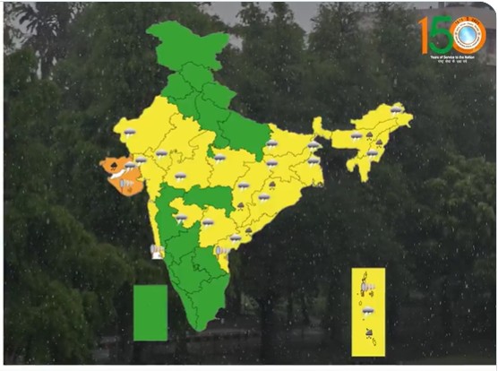 पिछले 24 घंटे में गुजरात समेत कोंकण तट पर भारी बारिश का दौर जारी है। वहीं, उड़ीसा और आंध्र प्रदेश में चक्रवात के कारण तेज आंधी-तूफान के साथ बरसात जारी है। वहीं, आज मौसम विभाग ने गुजरात में बारिश का ऑरेंज अलर्ट जारी किया है। इसके अलावा उत्तर पूर्वी राज्यों समेत राजस्थान, मध्य प्रदेश, यूपी, बिहार, उड़ीसा, आंध्र प्रदेश और तेलंगाना में बारिश का येलो अलर्ट जारी हुआ है।