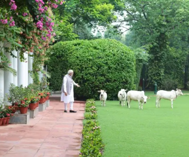अपने आधिकारिक आवास, नई दिल्ली के 7 लोक कल्याण मार्ग पर गायों के साथ पीएम मोदी ने कुछ पल बिताए थे।