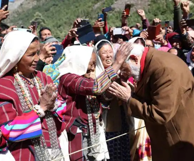 पीएम मोदी ने पिथोरागढ़ के गुंजी गांव पहुंचकर एक बुजुर्ग महिला से आशीर्वाद लिया था।