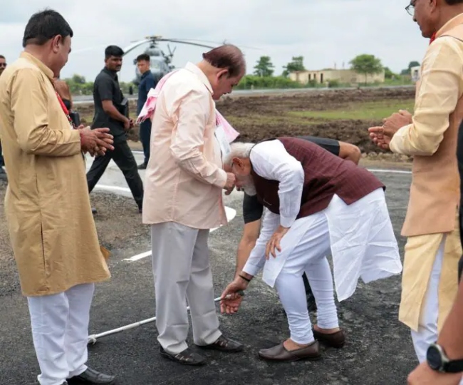मध्य प्रदेश में पीएम मोदी को बीजेपी कार्यकर्ता की छड़ी उठाने में मदद करते देखा गया था। उस पल को कैमरे में कैद कर लिया गया।