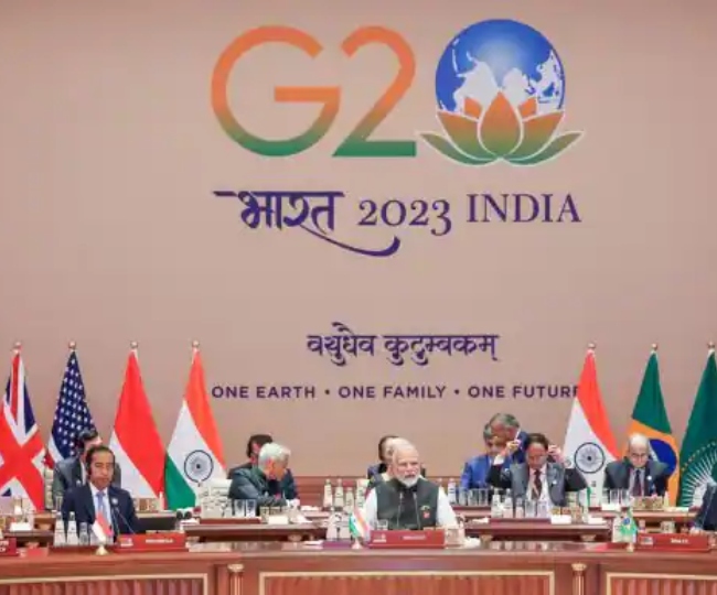 नई दिल्ली में G20 नेताओं के शिखर सम्मेलन में भारत का प्रतिनिधित्व करते हुए पीएम मोदी की तस्वीर कैमरे में कैद की गई।