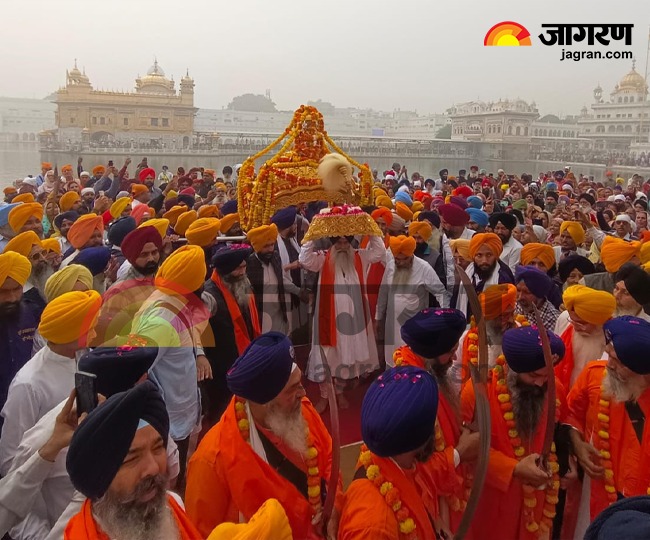 इस दौरान जत्थेदार ज्ञानी रघुवीर सिंह श्री गुरु ग्रन्थ साहिब जी को अपने शीश पर सुशोभित कर ले जाते हुए नजर आए। वहीं, उनके पीछे श्रद्धालु भी नतमस्तक दिखें। आप भी देखें ये खास तस्वीरें...
