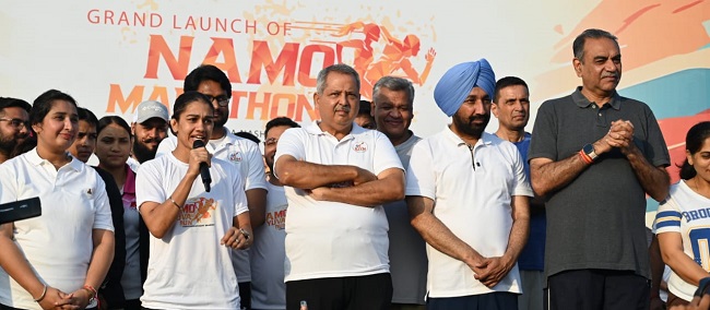 चंडीगढ़ में प्रधानमंत्री मोदी के जन्मदिवस के उपलक्ष्य में भारतीय जनता युवा मोर्चा द्वारा नमो रन मैराथन का आयोजन किया गया। चंडीगढ़ क्लब से सुखना लेक तक बच्चों युवाओं महिलाओं और बुजुर्गों ने दौड़ लगाकर फिट इंडिया-हिट इंडिया का संदेश दिया। लगभग पांच हजार से अधिक प्रतिभागियों ने उत्साहपूर्वक हिस्सा लिया। राज्यसभा सांसद सतनाम सिंह संधू और बबीता फोगाट ने युवाओं के जोश और देशप्रेम की भावना की सराहना की।