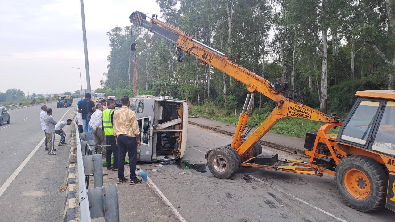 लुधियाना में पलटी 40 सवारियों से भरी बस, चंडीगढ़ से जा रही थी फिरोजपुर; कई यात्री घायल