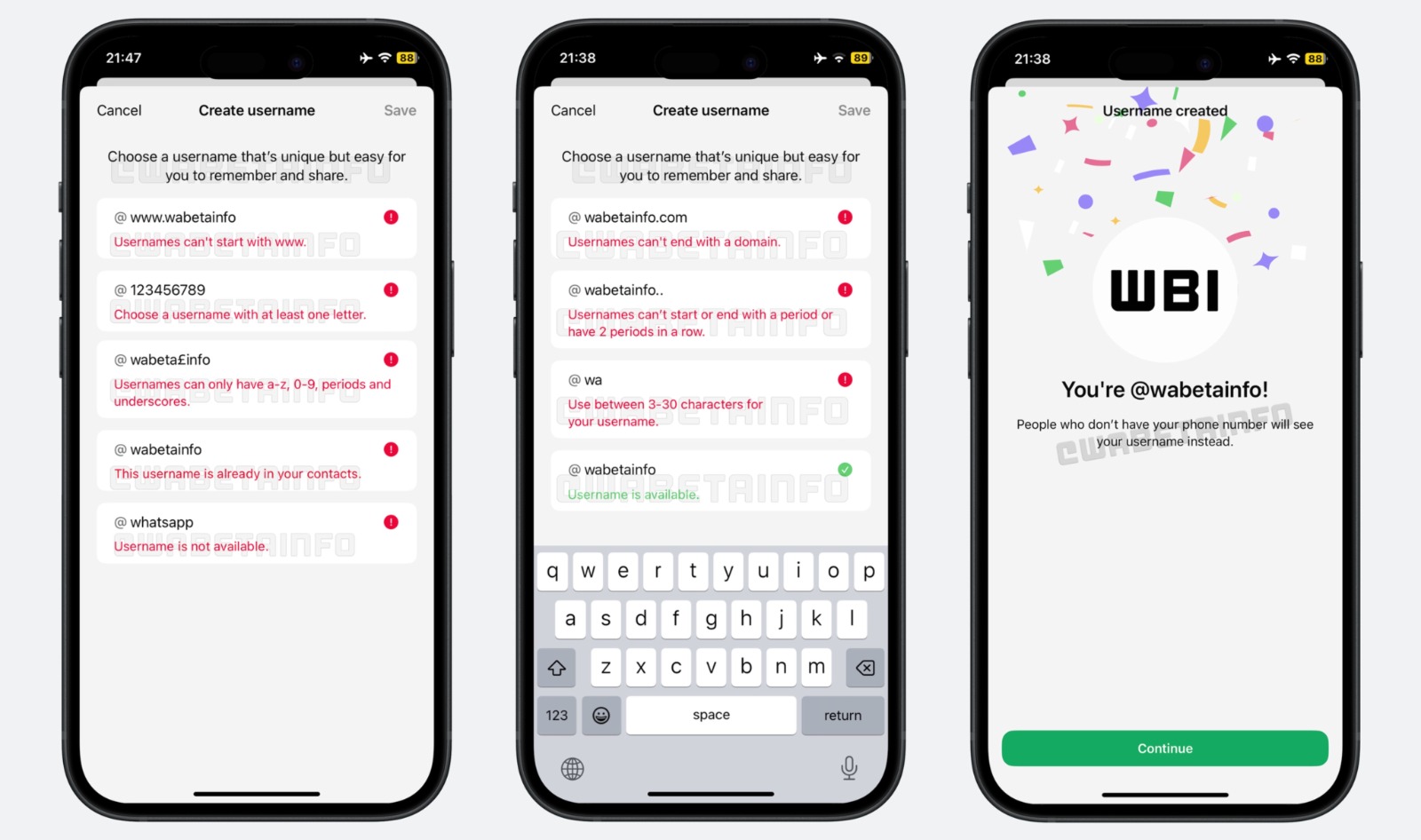 एक बार जब यूजरनेम लाइव हो जाते हैं, तो आप एक अलग हैंडल बना पाएंगे, ठीक वैसे ही जैसे आप टेलीग्राम या इंस्टाग्राम पर यूजरनेम सेट करते हैं। जब कोई आपसे चैट करना चाहता है और उसके पास आपका मोबाइल नंबर नहीं है, तो उसे जल्द ही आपका यूजरनेम दिखाई देगा। यह खास तौर से ग्रुप चैट में या नए लोगों से जुड़ने पर मददगार हो सकता है। हालांकि अभी तक कंपनी ने इस नए फीचर की लॉन्च डेट को लेकर कोई खुलासा नहीं किया है लेकिन ऐसा लग रहा है कि फीचर टेस्टिंग के लास्ट स्टेज पर है जिसे बाद इसे पेश किया जा सकता है।
