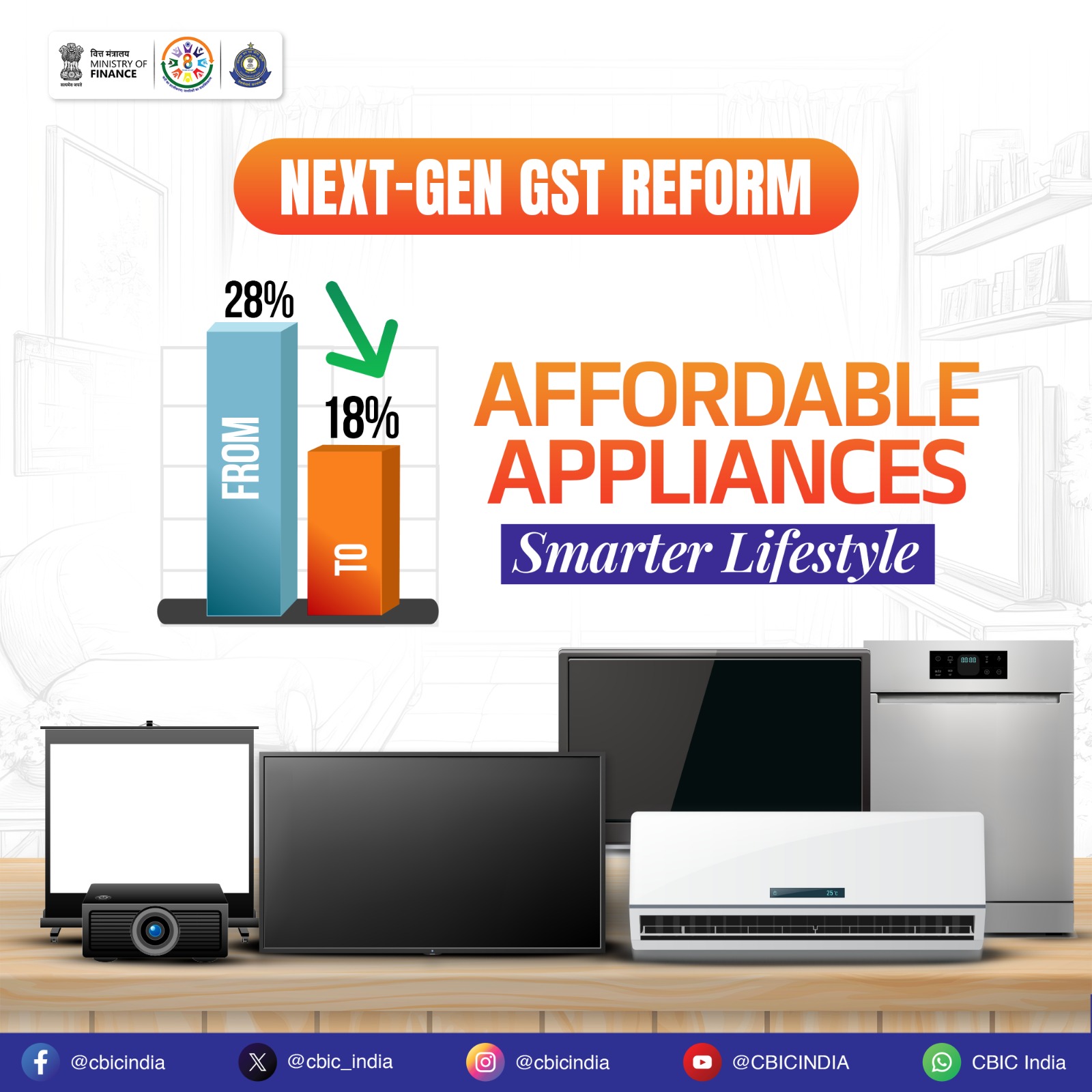 सरकार का ये फैसला खासतौर पर मीडिल क्लास फैमिली को ध्यान में रखकर लिया गया है। एसी के अलावा अब डिश वॉशिंग मशीन, प्रोजक्टर और 32 इंच से ऊपर की साइज वाले सारे LED और LCD TV पर भी GST को 28 प्रतिशत से घटाकर 18 प्रतिशत कर दिया है। GST को लेकर सरकार ने बड़ा फैसला लिया है। अब तक 5%, 12%, 18% और 28% के चार स्लैब चलते थे। इन्हें हटाकर अब सिर्फ दो स्लैब कर दिए गए हैं- 5% और 18%। इसी के साथ एक नया 40% टैक्स स्लैब लागू हुआ है, जो अब तक का सबसे हाई GST रेट है।