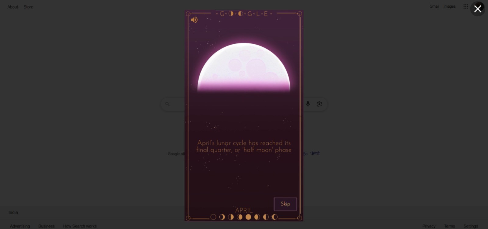 आज गूगल ने एक नया और इंटरएक्टिव डूडल पेश किया है जिसका टाइटल ‘राइज ऑफ द हाफ मून अप्रैल’ है। दरअसल ये खास डूडल इस महीने के लास्ट हाफ मून को दिखा रहा है। कंपनी ने इसके साथ एक मजेदार कार्ड-बेस्ड गेम भी पेश किया है जहां आप चांद के अलग-अलग फेज के बारे में नॉलेज ले सकते हैं। इस गेम को खेलना भी काफी आसान है।
