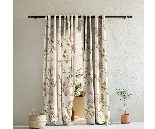 2. SPACES DRAPE STORY Fabric Floral Elegant Curtain