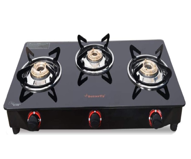 यह 3 बर्नर वाला Butterfly Gas Stove है, जिसके टॉप पर टफ क्वालिटी का ग्लास लगा हुआ है, जो काफी मजबूत है। Butterfly Gas Stove Price: Rs 2799.
