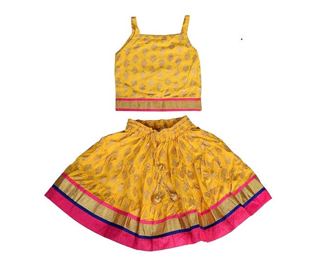 पीले रंग में आ रही यह ड्रेस काफी सुंदर है। जिन्हें पहनने के बाद आपकी बिटियां राधा मैया से कम नहीं लगेंगी। इसे स्टिच या सिलवाने की जरूरत नहीं पड़ती है यह रेडीमेड मिलती है। यह स्लीवलेस लहंगा चोली है जिसमें स्क्वायर नेक और इलास्टिक के साथ डिजाइन किया गया है जिससे इसकी फिटिंग बच्चे पर काफी अच्छी आएगी। इसमें 3 महीने के लेकर 6 साल की बेटी के लिए साइज मिल जाता है।
