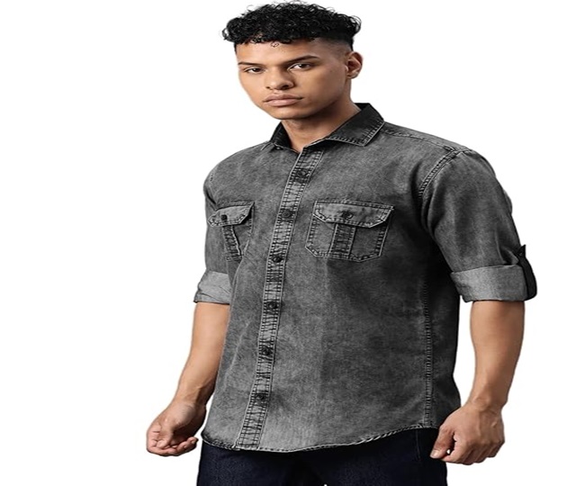 ग्रे प्लस ब्लैक का कॉम्बीनेशन इस डेनिम शर्ट में आपको देखने को मिलेगा। इसमें कारगो डबल पॉकेट दी गई है, जो स्टाइल और फैशन को अपग्रेड करती है। 100 प्रतिशत स्क्रीन फ्रेंडली और 100 प्रतिशत कॉटन के साथ इसे चुन सकते हैं।
