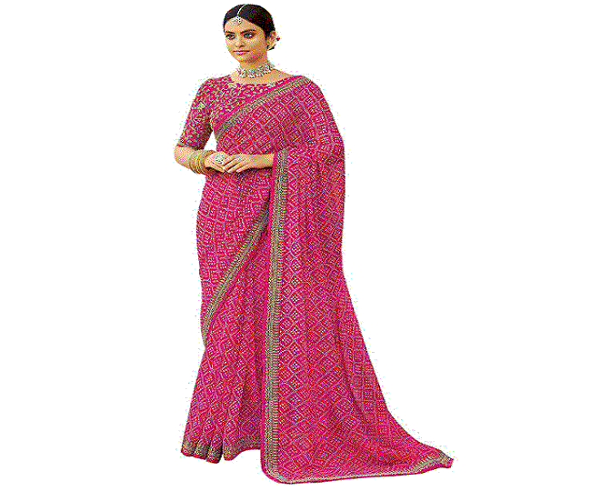 SIRIL Women's Bandhani Printed & Embroidery Work Saree