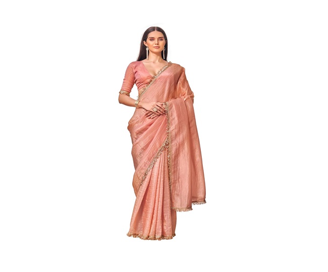 लेटेस्ट पीच कलर साड़ी का यहां देखें लेटेस्ट कलेक्शन