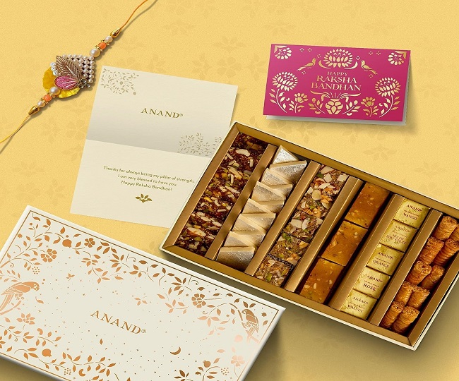 इसकी पैकिंग काफी स्टाइलिश लुक के साथ की गई है, जिसे आप अपने भाई-भाभियों को रक्षाबंधन के उपहार में दे सकते हैं। 800 ग्राम का यह गिफ्ट बॉक्स वेजीटेरियन है और इसमें कोई मिलावट नहीं है। Anand Sweet Price: Rs 1,145.