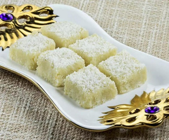 नारियल बर्फी (Coconut Burfi) - नारियल की बर्फी Indian Sweet में काफी ज्यादा स्वादिष्ट और लोगों को पसंद होती है। यह बर्फी इतनी सॉफ्ट होती है, कि इसे खाएं बिना रहा नहीं जाता है। नारियल के बर्फी मार्केट में भी अवेलेबल है, यदि आप आने वाले त्योहार पर नारियल की बर्फी ऑनलाइन ऑर्डर करना चाहते हैं, तो अमेज़न पर सस्ते दाम में मिल रही है।