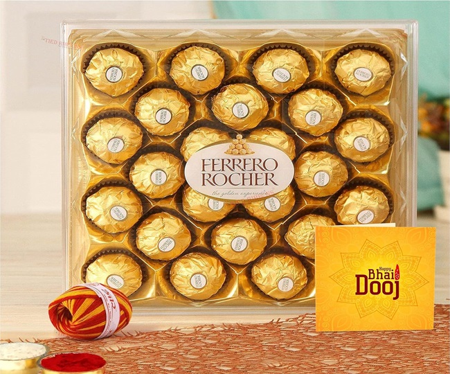 यह Bhai Dooj 2024 के लिए गिफ्ट सेट है जो आप अपनी बहन को दे सकते हैं, यह बहुत ही अच्छा ऑप्शन है। वैसे हर बहन को चॉकलेट बहुत पसंद होती है तो इसे आप अपनी बहन को दे सकते हैं। यह एक चॉक्लेट बॉक्स है जिसमें 24 पीस ऑफ चॉक्लेट मिल जाएंगे।