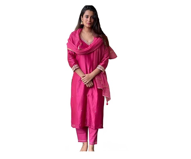 अगर अपनी बहन को कोई कपड़ा गिफ्ट में देने के लिए सोच रहे हैं, तो इस कुर्ता सेट दे सकते हैं। ये पिंक और बेगनी कलर ऑप्शन में मिल रहा है, जिसे पसंद के हिसाब से चुन सकते हैं। कुर्ता सेट में 1 कुर्ता, 1 पैंट और मैचिंग दुपट्टा मिल रहा है। यह कॉटन ब्लेंड मटेरियल से बना है, जो बॉडी पर काफी लाइटवेट फील होता है।