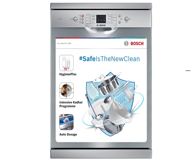 बॉश डिशवॉशर 9.5 लीटर पानी का उपयोग करता है। बर्तनों की बेहतर सफाई के लिए इसमें इन बिल्ड वॉटर सॉफ्टनिंग डिवाइज, 2 वॉटर स्प्रे और 1 टॉप शावर सुविधा भी दी गई है। यह 60 मिनट में सारे बर्तनों को एकदम साफ और सुखा कर देता है। कांच की क्रॉकरी के लिए मशीन में ग्लास केयर सिस्टम फीचर दिया है। Bosch Dishwasher Price: Rs 44,590.