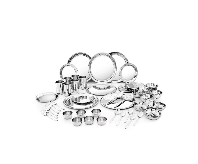 इस स्टील के डिनर सेट का यूज आप घर आए मेहमानों को खाने परोस के देने के लिए कर सकते हैं। इस डिनर सेट में आपको 50 पिस सेट मिलता हैं। इसके अलावा यह गिफ्ट करने के लिए भी अच्छा ऑप्शन हैं। Steel Dinner Set Price: Rs 1,842
