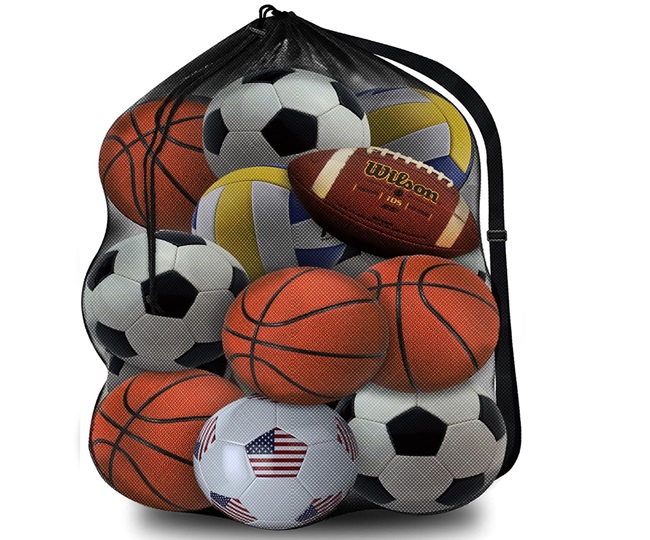 यह हेवी-ड्यूटी मेश बॉल बैग 30x40 इंच की माप के साथ आता है और 12 स्टैंडर्ड आकार के सॉकर, 8 बास्केटबॉल या फिर 12 वॉलीबॉल गेंदों को रखने के लिए पर्याप्त जगह प्रदान करता है। यह प्रशिक्षकों, शिक्षकों और एथलीटों के लिए एक आदर्श किट है। इसे उच्च गुणवत्ता वाले मौसम प्रतिरोधी नायलॉन नेट से बना गया है, जो कि काफी शानदार है।