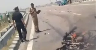 चित्रकूट में बुंदेलखंड एक्सप्रेसवे पर कार से भिड़ंत के बाद बाइक में लगी आग, दो युवकों की मौत